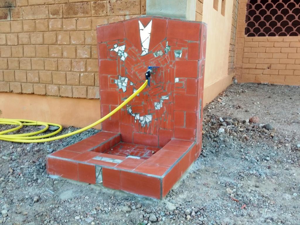Voilà une fontaine que l'on pourrait trouver banale. Encore que le carrelage n'est pas banal, lui. C'est une fois de plus l’œuvre de notre carreleur préféré, Cheikh !